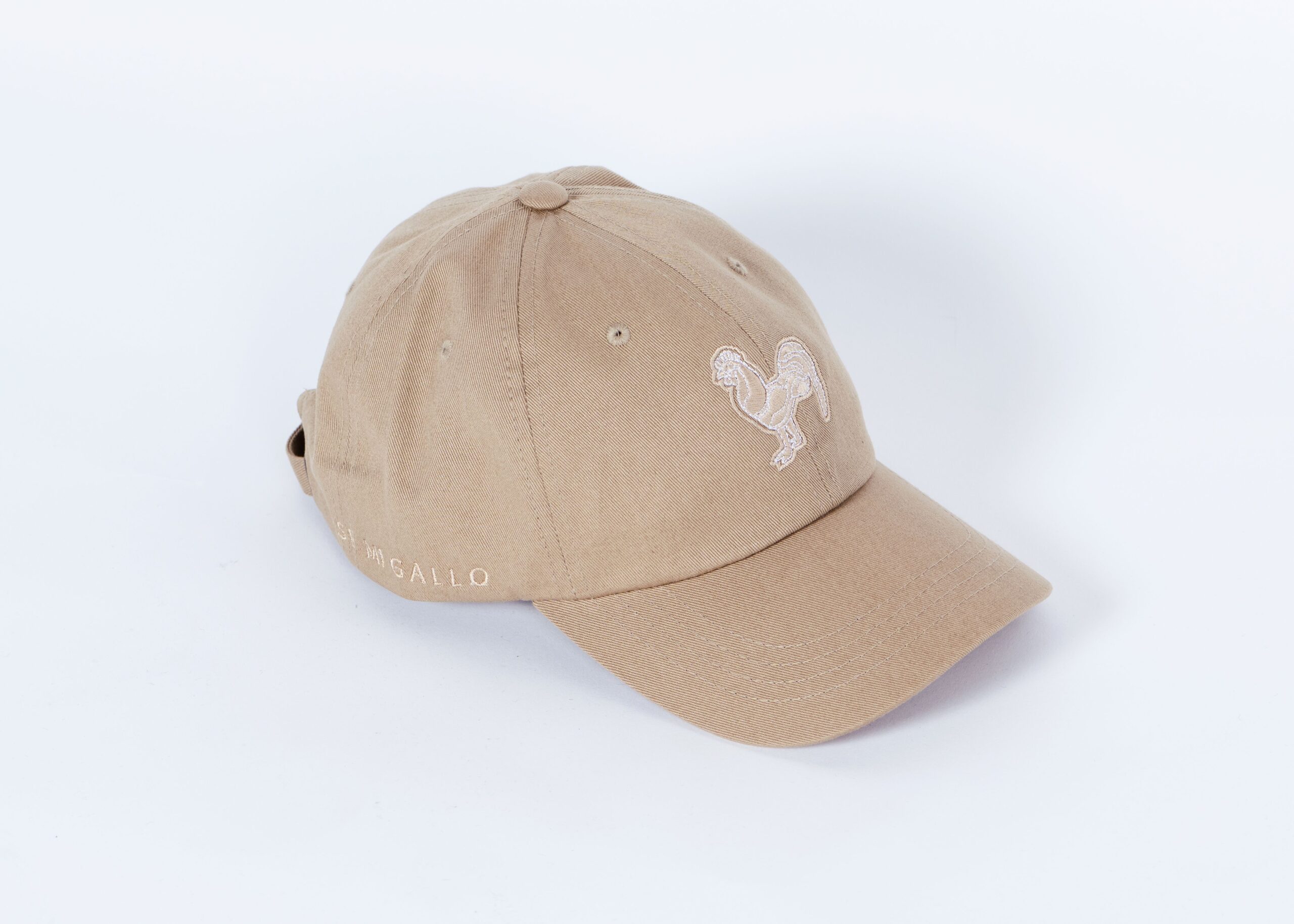 Gorra 100% Algodón en color Beige, hebilla metálica ajustable, estilo tipo «Baseball cap» con bordado al frente y letras en lado derecho. Unitalla .